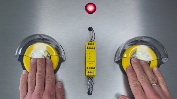 CAPTRON ist Pionier der ersten kapazitiven Zweihandsteuerung mit Sicherheitskategorie 4 (PLe nach EN ISO 13849-1). Die safeCAP-Serie bietet höchste Sicherheit bei der Bedienung von Maschinen mit hohem Verletzungsrisiko – z. B. Pressen oder Stanzen.